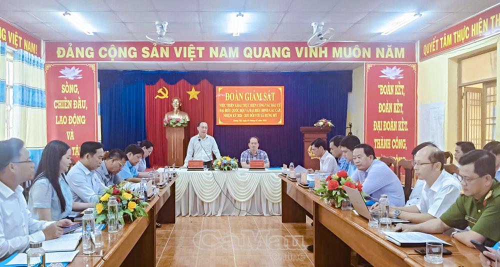 Cùng ngày, đoàn công tác tiếp tục giám sát công tác bầu cử tại xã Hưng Mỹ.