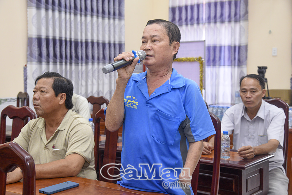 Cử tri Bùi Hoàng Ty, ấp Mỹ Hòa, đề nghị hỗ trợ xây dựng trạm bơm chống ngập úng diện tích lúa do ảnh hưởng triều cường và mưa liên tục.