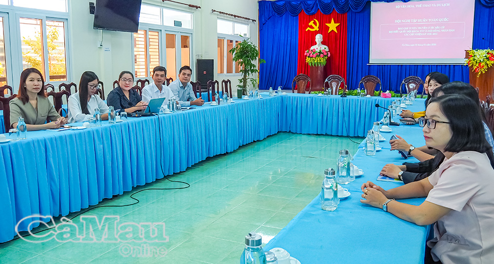Phóng viên, biên tập viên và đội ngũ làm công tác thông tin cơ sở tỉnh Cà Mau tham gia lớp tập huấn.