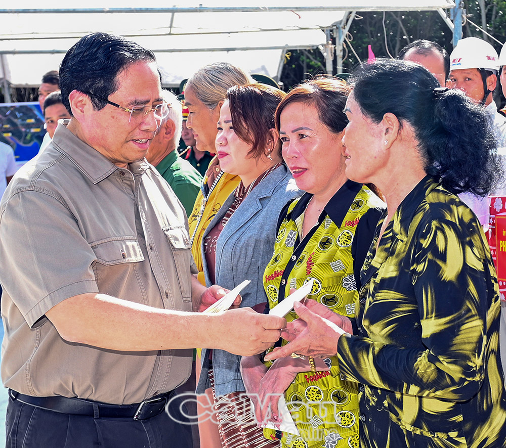 Dịp này, Thủ tướng Phạm Minh Chính thăm và tặng quà, động viên cán bộ, chiến sĩ, kỹ sư tham gia xây dựng các công trình.