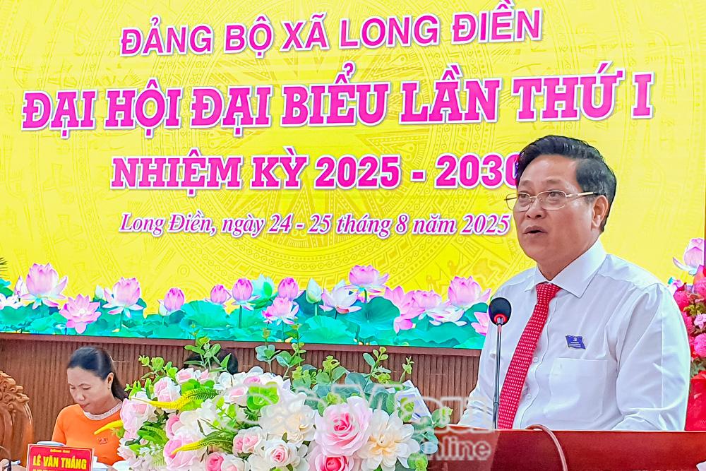 Đảng bộ xã Long Điền được hợp nhất từ 2 Đảng bộ xã Long Điền và Điền Hải, hiện có 38 chi bộ trực thuộc với 746 đảng viên. Đại hội đại biểu lần thứ I, nhiệm kỳ 2025-2030 là sự kiện chính trị quan trọng, đánh dấu giai đoạn phát triển mới của Đảng bộ và Nhân dân xã. Đại hội đã đánh giá toàn diện kết quả 5 năm thực hiện Nghị quyết nhiệm kỳ 2020-2025, đồng thời đề ra phương hướng, mục tiêu, nhiệm vụ và các giải pháp đột phá cho nhiệm kỳ mới, hướng tới xây dựng xã phát triển toàn diện, bền vững, đáp ứng kỳ vọng của Nhân dân. Với phương châm “Đoàn kết - Dân chủ - Kỷ cương - Đổi mới”, Đại hội thể hiện quyết tâm và khát vọng vươn lên, phấn đấu xây dựng xã đạt chuẩn đô thị loại V.