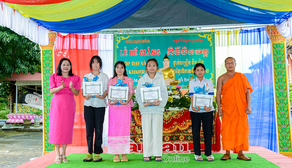 Dịp này, Giám đốc Sở Dân tộc và Tôn giáo đã tặng giấy khen cho 6 tập thể và 20 cá nhân có thành tích tiêu biểu trong công tác vận động, dạy và học chữ Khmer, chữ Hoa hè 2025.