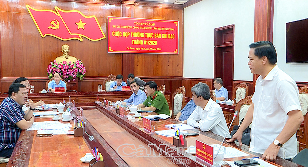 Tại cuộc họp, Ban Chỉ đạo đã nghe báo cáo nhanh về tình hình, kết quả công tác phòng, chống tham nhũng, lãng phí, tiêu cực trong tháng 1; đồng thời cho ý kiến đối với tiến độ triển khai một số dự án trọng điểm như: Dự án nâng cấp cơ sở hạ tầng Bến cá Hồ Gùi, xã Nguyễn Huân, huyện Đầm Dơi (cũ); Dự án xây dựng, nâng cấp đê biển Đông và hệ thống cống qua đê; Dự án nâng cấp tuyến đường Ninh Quới - Ngan Dừa, huyện Hồng Dân (cũ).