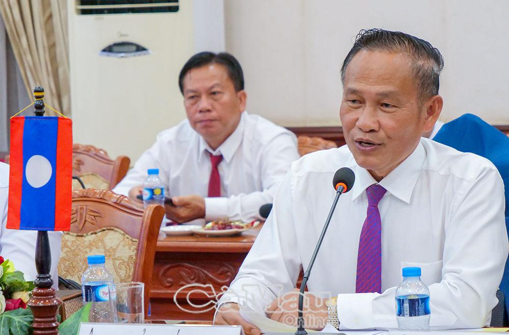 Tiếp và làm việc với đoàn cán bộ tỉnh Cà Mau có ông Kéo Ủ Đon Bút Sinh Khỏn, Uỷ viên Ban Thường vụ, Phó Tỉnh trưởng tỉnh Khăm Muồn.