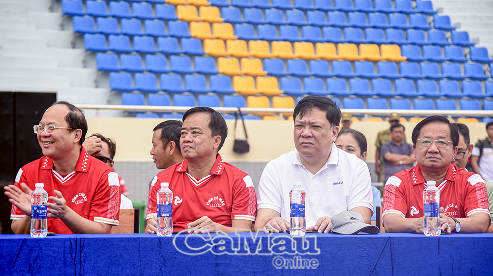 Các đồng chí lãnh đạo tỉnh Cà Mau dự khai mạc giải bóng đá.
