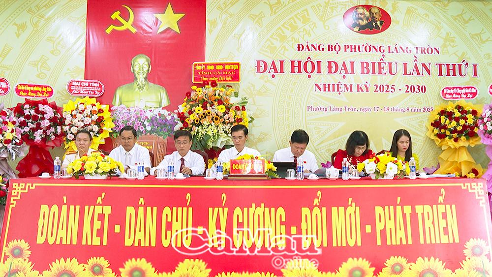 Phát biểu chỉ đạo, đồng chí Lê Minh Ý, Phó Trưởng Ban Thường trực Ban Tổ chức Tỉnh uỷ, đề nghị ngay sau Đại hội, Đảng bộ phường Láng Tròn nhanh chóng ổn định tổ chức, xây dựng khối đoàn kết, thống nhất, xem đây là nhiệm vụ then chốt, quyết định. Đồng chí nhấn mạnh phường cần tập trung phát triển kinh tế – xã hội, nâng cao đời sống Nhân dân; khai thác hiệu quả lợi thế về giao thông thuỷ - bộ, diện tích nông nghiệp, nuôi trồng thuỷ sản, nhất là mô hình tôm – lúa, tôm siêu thâm canh; phát huy tiềm năng thương mại, dịch vụ, công nghiệp chế biến gắn với vùng nguyên liệu.
