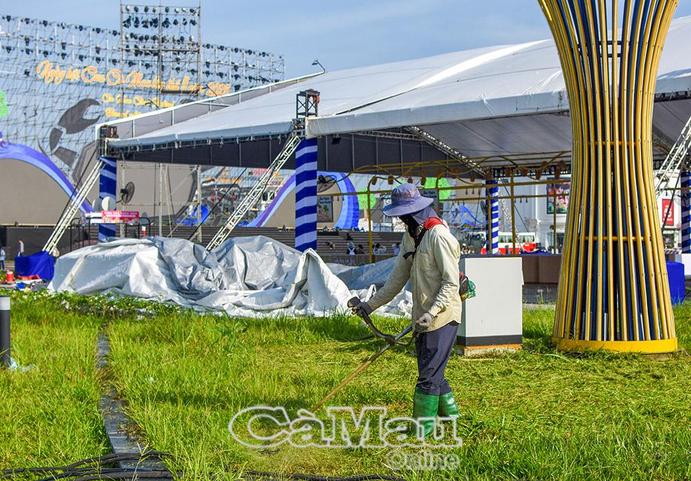 Ghi nhận tại Quảng trường Phan Ngọc Hiển, nơi diễn ra lễ khai mạc và nhiều hoạt động trọng điểm, các đội thi công đang gấp rút lắp đặt, điều chỉnh hệ thống âm thanh - ánh sáng; các nghệ sĩ, diễn viên tích cực tập luyện dưới thời tiết nắng nóng. Công tác bố trí sân khấu, khán đài và không gian hoạt động đang được hoàn thiện theo đúng tiến độ.