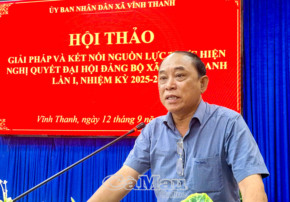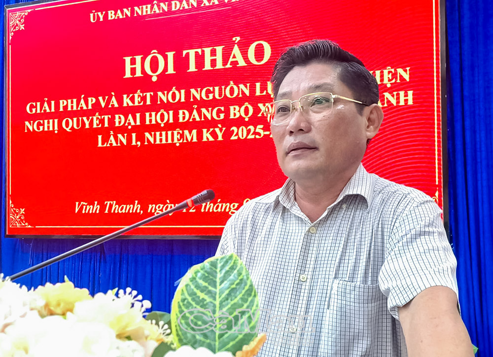 Ngày 12/9, UBND xã Vĩnh Thanh tổ chức Hội thảo “Giải pháp và kết nối nguồn nhân lực thực hiện Nghị quyết Đại hội Đảng bộ xã lần thứ I, nhiệm kỳ 2025-2030”.