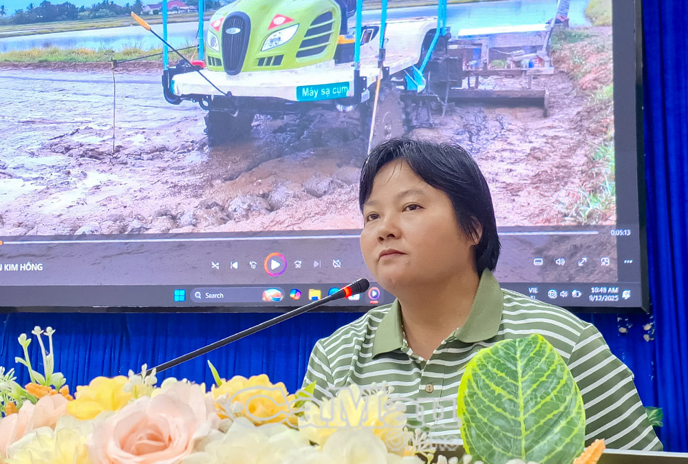 Tại hội thảo, đồng chí Trương Hoàng Lil, Chủ tịch UBND xã, đã báo cáo chương trình hành động thực hiện Nghị quyết Đại hội, nhấn mạnh 4 nhiệm vụ trọng tâm: huy động nguồn lực, thu hút đầu tư; ứng dụng khoa học công nghệ, chuyển đổi số, phát triển nông nghiệp xanh – tuần hoàn, thích ứng biến đổi khí hậu; gắn sản xuất với liên kết tiêu thụ sản phẩm; đẩy mạnh chuyển đổi số trong quản lý, sản xuất và đời sống xã hội.