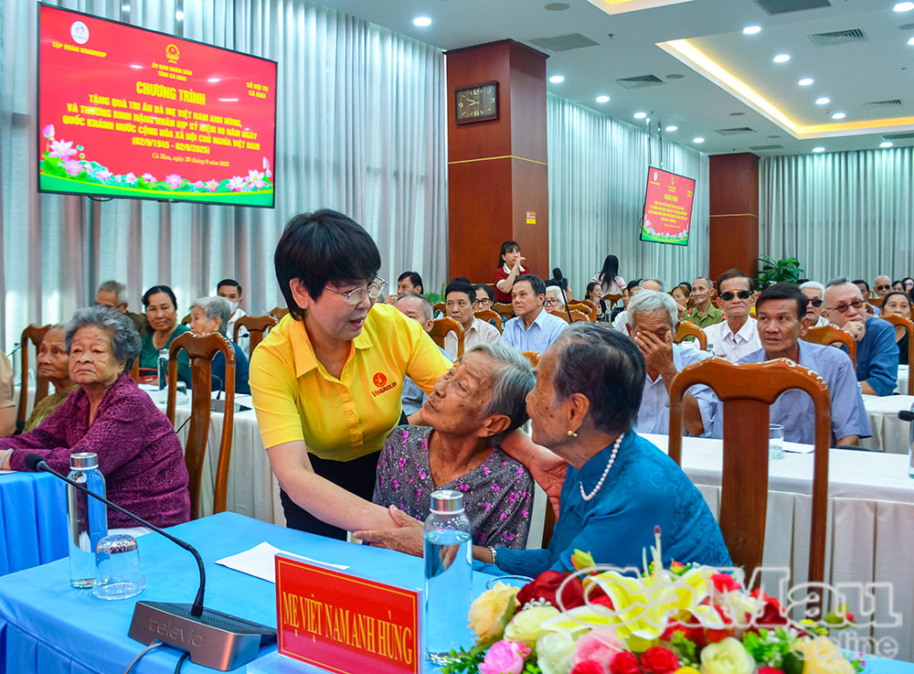 Theo đó, đại diện lãnh đạo tỉnh và đại diện Quỹ Thiện Tâm đã trao 71 suất quà cho 71 Mẹ VNAH và 120 suất quà cho 120 thương binh nặng của tỉnh. Mỗi suất trị giá 20 triệu đồng, với tổng số tiền trên 3,8 tỷ đồng.
