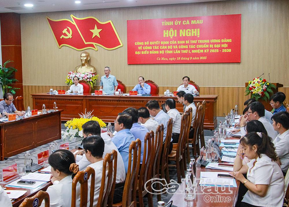 Chiều 18/9, Tỉnh uỷ Cà Mau tổ chức Hội nghị về công tác chuẩn bị Đại hội đại biểu Đảng bộ tỉnh lần thứ I, nhiệm kỳ 2025-2030.