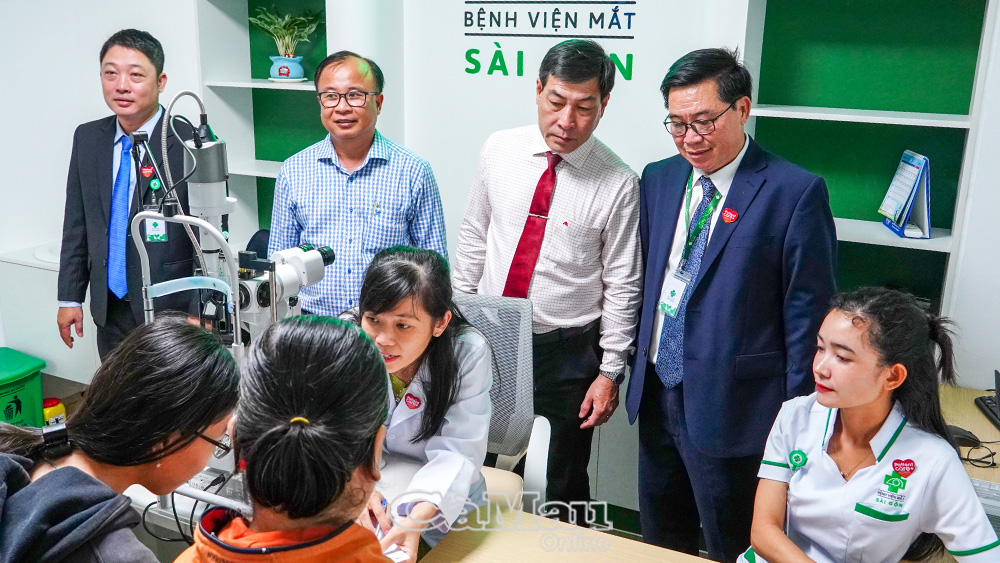 Đại diện lãnh đạo Sở Y tế, Tập đoàn Y khoa Sài Gòn và Bệnh viện Mắt Sài Gòn Minh Hải tham quan cơ sở vật chất, quy trình khám tại Bệnh viện Mắt Sài Gòn Minh Hải.
