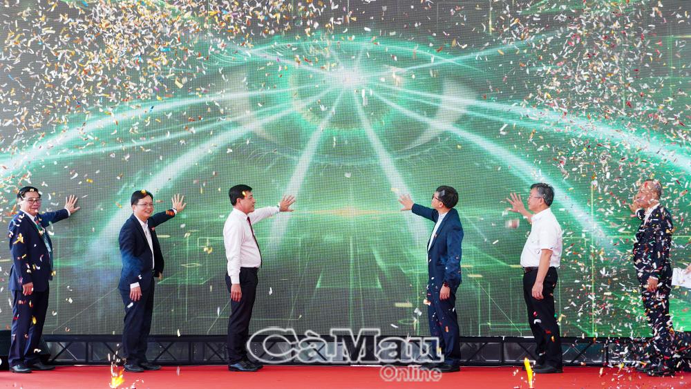 Đại diện lãnh đạo Sở Y tế tỉnh Cà Mau, Tập đoàn Y khoa Sài Gòn và Bệnh viện Mắt Sài Gòn Minh Hải thực hiện nghi thức bấm nút, chính thức đưa bệnh viện vào hoạt động.