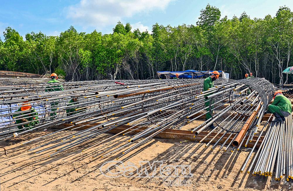 Khí thế thi đua trên các công trình trọng điểm, quyết tâm đưa dự án về đích đúng tiến độ. (Trong ảnh: Công nhân thi công dự án cao tốc Cà Mau - Ðất Mũi). Ảnh: TRẦN NGUYÊN