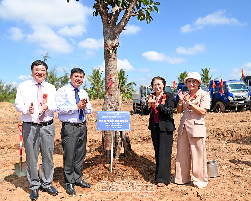 Nguyên Chủ tịch Quốc hội Nguyễn Thị Kim Ngân (thứ hai từ phải sang) cùng các đồng chí Phạm Thành Ngại( Chủ tịch UBND tỉnh Đồng Tháp), Nguyễn Tiến Hải (thứ hai bên trái), Bí Thư Tỉnh uỷ An Giang (nguyên lãnh đạo tỉnh Cà Mau) trồng cây lưu niệm tại khuôn viên công trình.