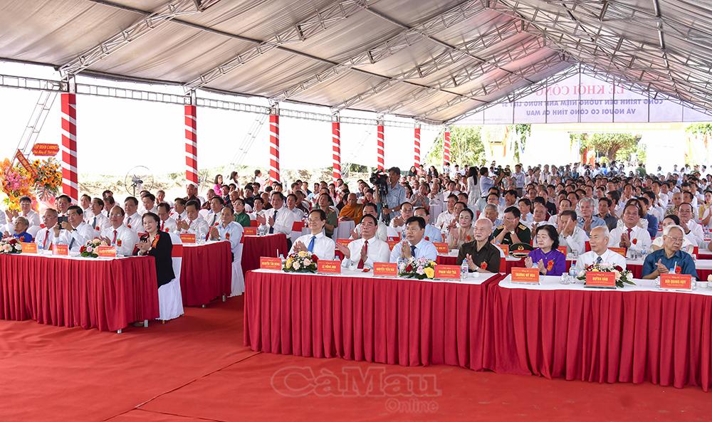 Các đồng chí nguyên lãnh đạo Đảng, Nhà nước; lãnh đạo tỉnh Cà Mau cùng đông đảo người dân dự lễ khởi công.