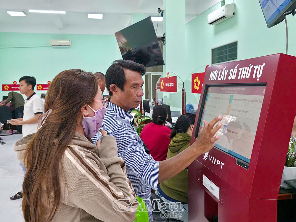 Người dân thực hiện lấy số thứ tự làm thủ tục tại Trung tâm Phục vụ hành chính công phường Bạc Liêu.