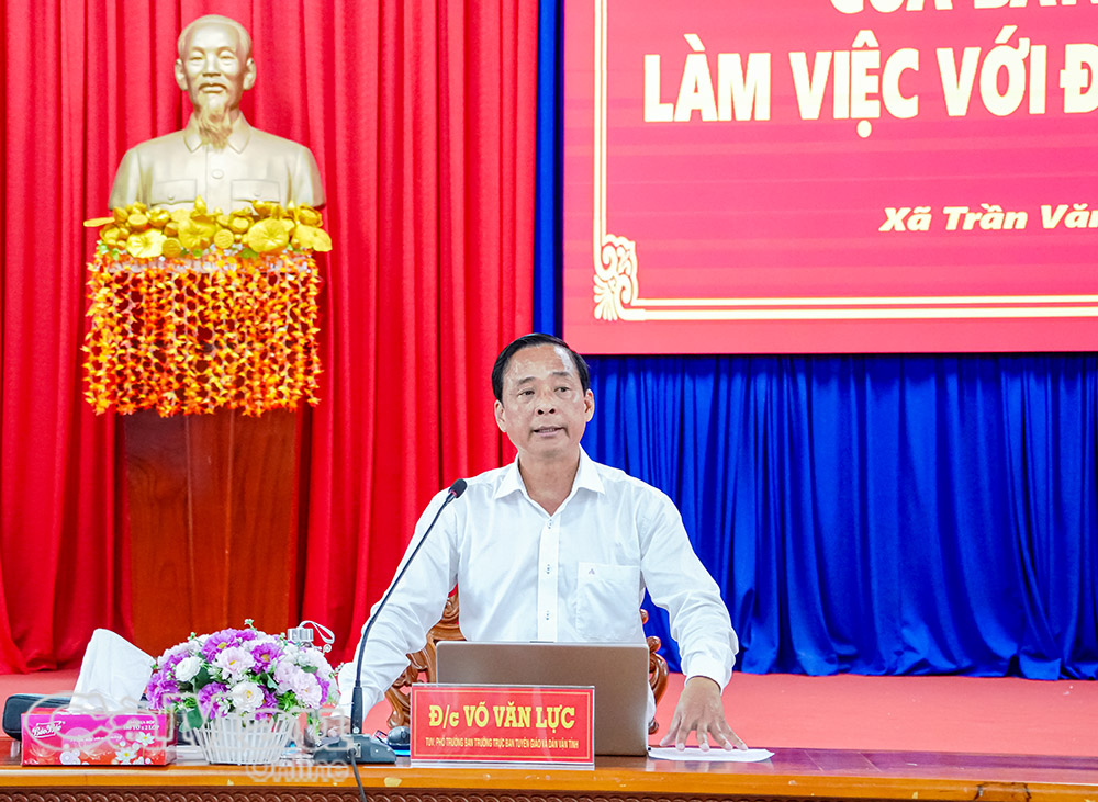 Đồng chí Võ Văn Lực, Phó Trưởng ban Thường trực Ban Tuyên giáo và Dân vận Tỉnh uỷ, đề nghị Đảng uỷ xã Trần Văn Thời tiếp tục phát huy tinh thần chủ động, sáng tạo trong công tác quán triệt, triển khai thực hiện các nghị quyết của Bộ Chính trị.