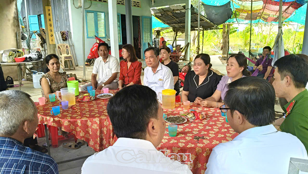 Phó Chủ tịch Uỷ ban MTTQ Việt Nam tỉnh Cà Mau Nguyễn Văn Khởi cùng lãnh đạo xã Hoà Bình thăm hỏi, chia buồn, động viên gia đình nạn nhân D.S.K