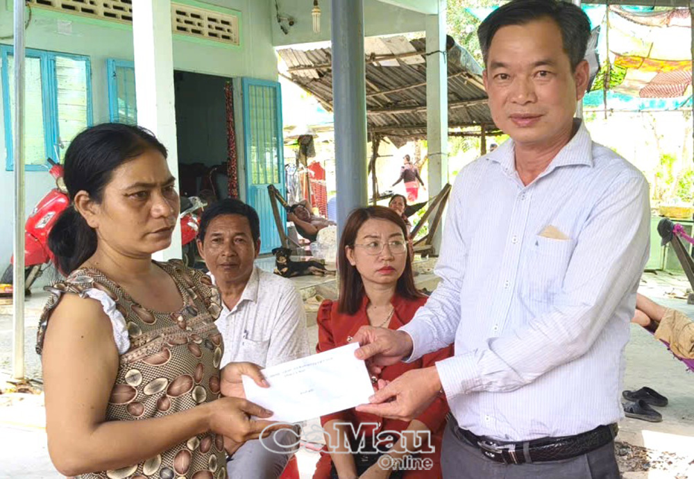 Phó Chủ tịch Uỷ ban MTTQ Việt Nam tỉnh Cà Mau Nguyễn Văn Khởi ân cần thăm hỏi, chia buồn, động viên các gia đình nạn nhân.