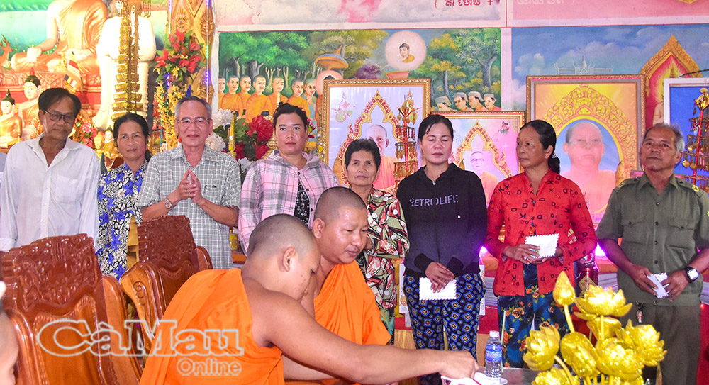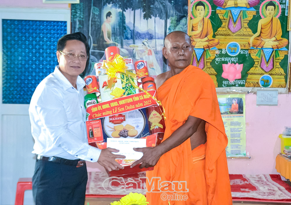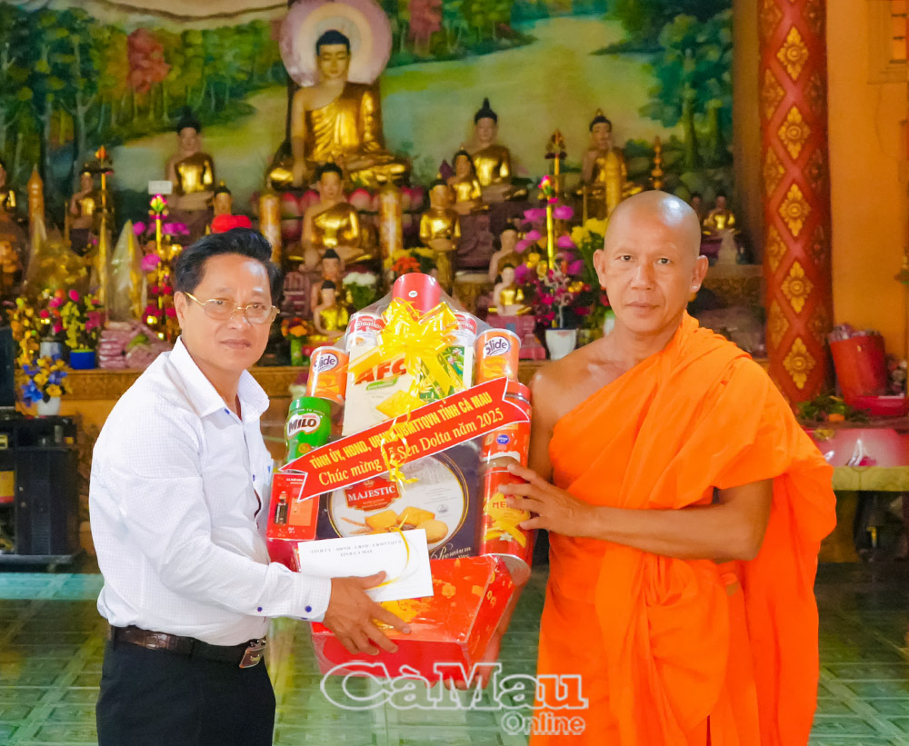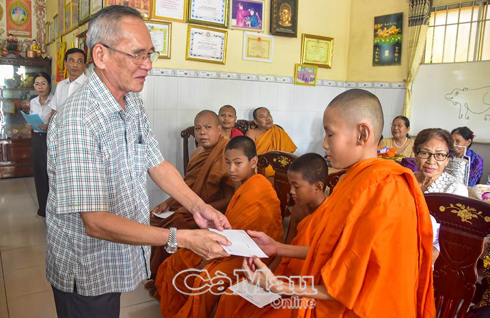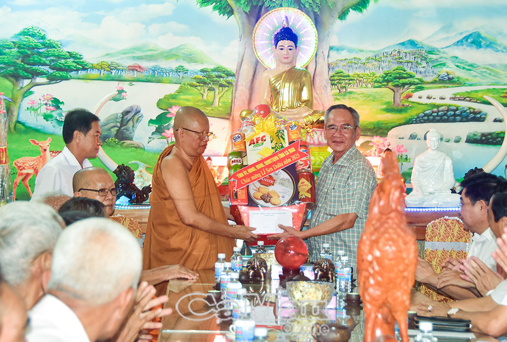 Dịp này, đồng chí Bùi Tấn Bảy cùng các thành viên trong đoàn đã trao tặng quà cho các chùa, Ban Quản trị, Ban Hoằng pháp, Achar và gửi lời chúc đến các vị cùng đồng bào Khmer đón lễ Sene Dolta vui tươi, đoàn kết, tiết kiệm.