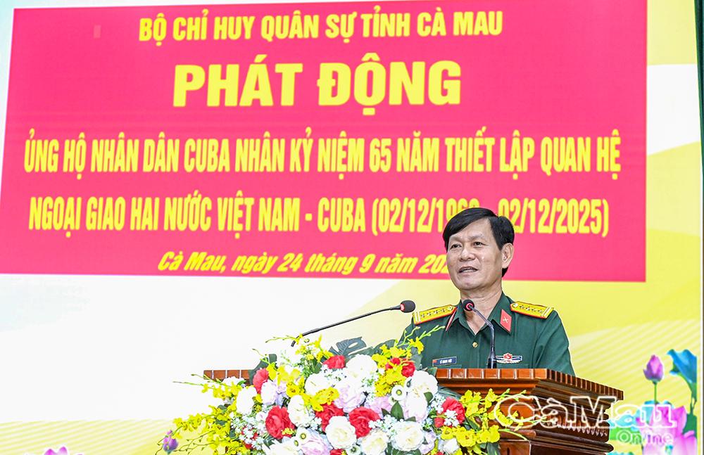 Đại tá Lê Quang Luật nhấn mạnh, Việt Nam và Cuba là hai quốc gia có mối quan hệ truyền thống đặc biệt, thuỷ chung son sắt là biểu tượng sáng ngời của tình đoàn kết quốc tế giữa 2 dân tộc cùng chung lý tưởng độc lập, tự do và chủ nghĩa xã hội. Trong suốt chiều dài lịch sử, Nhân dân Cuba luôn dành cho Việt Nam tình cảm sâu nặng, sự giúp đỡ chí tình, đặc biệt trong giai đoạn đấu tranh giành độc lập dân tộc. Vì vậy, việc cán bộ, chiến sĩ lực lượng vũ trang tỉnh Cà Mau chung tay ủng hộ là hành động thiết thực, góp phần chia sẻ khó khăn, thể hiện tinh thần đoàn kết quốc tế.