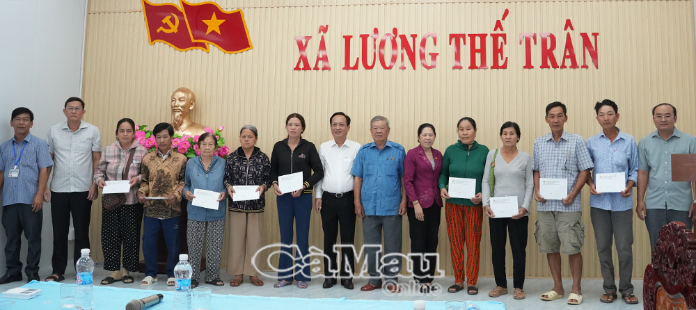 Chủ tịch HĐND tỉnh Phạm Văn Thiều và bà Võ Thị Hồng Thoại, Chủ tịch Hội Nạn nhân chất độc da cam/dioxin tỉnh Cà Mau trao quà Tết cho các nạn nhân chất độc da cam/dioxin tại Phường Lý Văn Lâm.
