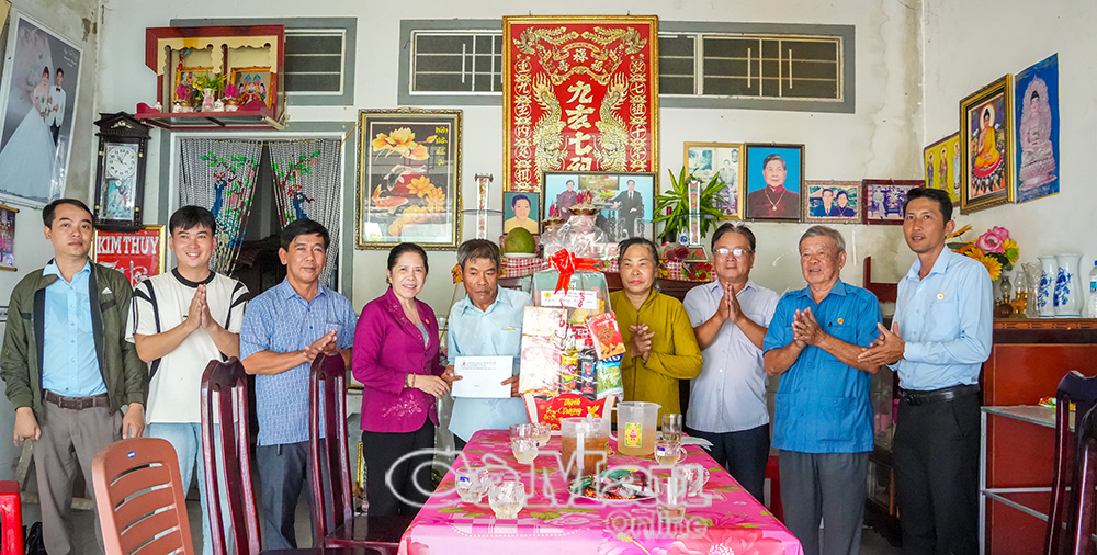 Bà Võ Thị Hồng Thoại, Chủ tịch Hội Nạn nhân chất độc da cam/dioxin tỉnh và ông Nguyễn Xuân Hùng, Chủ tịch HĐQT Quỹ nạn nhân chất độc da cam/dioxin tỉnh Cà Mau (thứ hai, từ trái sang) đến trao quà Tết Nguyên đán cho ông Bùi Hoàng Nô, ấp Đức An, Xã Lương Thế Trân.