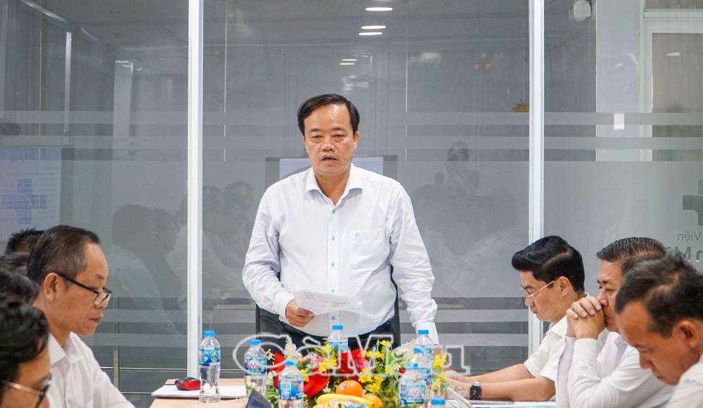Đồng chí Huỳnh Quốc Việt nhấn mạnh: "Mục tiêu cao nhất là bảo vệ, chăm sóc sức khoẻ Nhân dân, lấy Nhân dân làm trung tâm trong hoạt động của đơn vị y tế, dù là công lập hay tư nhân".