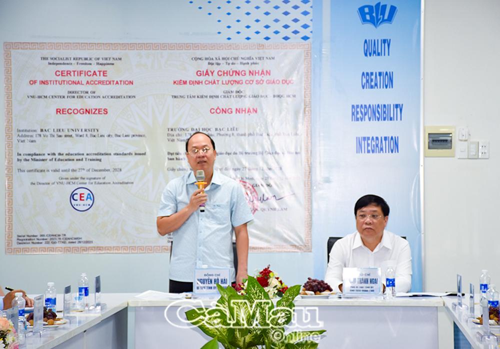 Phát biểu tại buổi làm việc, Bí thư Tỉnh uỷ Nguyễn Hồ Hải đề nghị, Trường Đại học Bạc Liêu cần có kế hoạch thu hút nguồn nhân lực trình độ cao (giáo sư, phó giáo sư, tiến sĩ) để gia tăng chất lượng đào tạo. Đồng thời, nâng cao trình độ nghiên cứu khoa học gắn với thực tiễn để đạt hiệu quả và đóng góp tăng trưởng cho tỉnh. Bên cạnh đó, cần xây dựng thương hiệu cho trường, thu hút tuyển sinh hiệu quả, tăng cường ứng dụng công nghệ số phục vụ đào tạo và nghiên cứu.