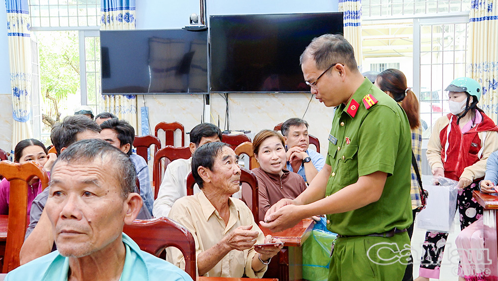 Lực lượng công an hướng dân người dân nhận quà qua VNeID.