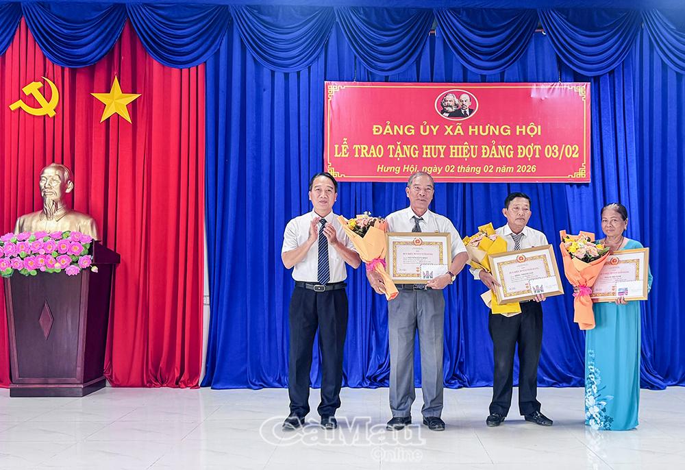 *Tại xã Hưng Hội, Đảng uỷ xã tổ chức lễ trao Huy hiệu 40 năm và 30 năm tuổi Đảng cho các đảng viên đang sinh hoạt tại các chi bộ trực thuộc. Đến dự buổi lễ có đồng chí Phan Hoàng Vũ, Phó Chủ tịch HĐND tỉnh Cà Mau.