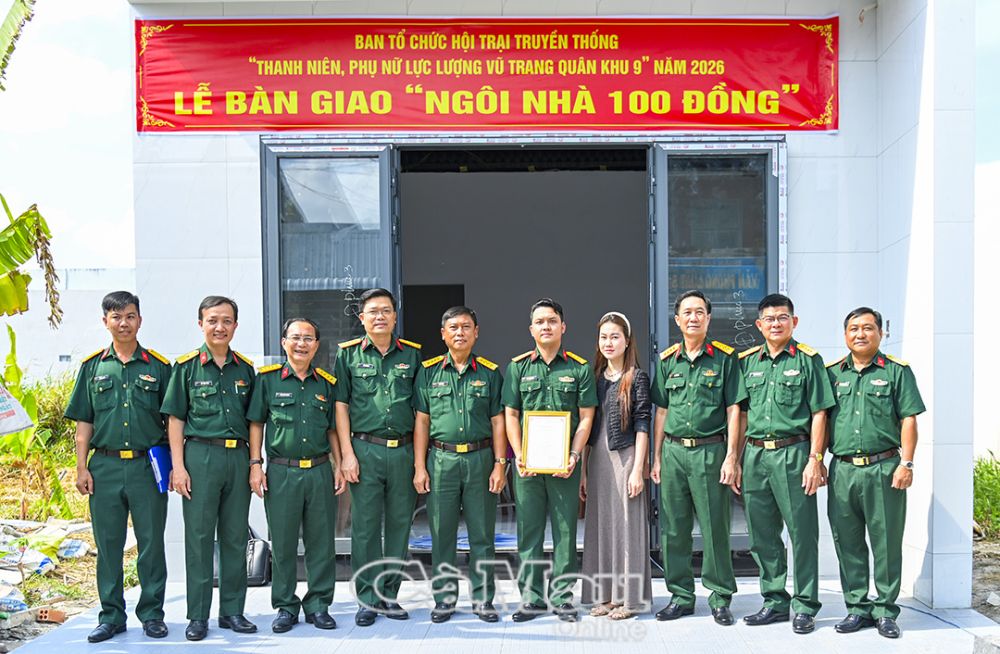 Được biết, Hội trại truyền thống “Thanh niên, Phụ nữ lực lượng vũ trang Quân khu 9” năm 2026 do Bộ CHQS tỉnh Cà Mau đăng cai tổ chức đã vận động, hỗ trợ xây dựng tổng cộng 5 căn nhà cho các đối tượng khó khăn về nhà ở, từ nguồn đóng góp của 5 tỉnh, thành phố và Trường Quân sự Quân khu 9.