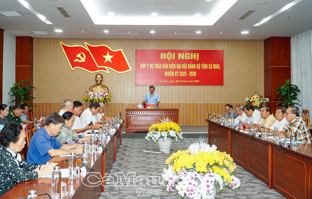Nhiều ý kiến của các đồng chí nguyên lãnh đạo tỉnh tập trung vào các nội dung cốt lõi, quan trọng của dự thảo văn kiện trình Đại hội Đảng bộ tỉnh khoá mới gồm: vấn đề xây dựng, chỉnh đốn Đảng và hệ thống chính trị; công tác cán bộ; công tác tận dụng, khơi thông, bứt phá các thế mạnh kinh tế trụ cột của tỉnh Cà Mau, đặc biệt là các ngành hàng chủ lực như tôm, cua, muối, lĩnh vực du lịch.