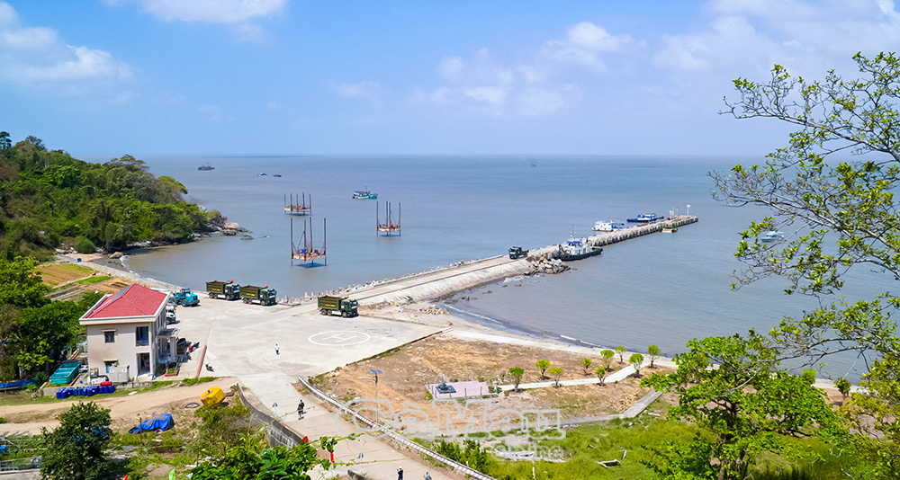 Một góc dự án Cảng tổng hợp lưỡng dụng Hòn Khoai đang dần hình thành, vươn dài về phía đất liền.