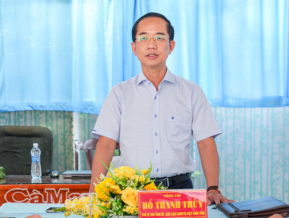 Đồng chí Hồ Thanh Thuỷ, Phó Bí thư Tỉnh uỷ, Chủ tịch Uỷ ban MTTQ Việt Nam tỉnh Cà Mau, phát biểu kết luận tại buổi làm việc.