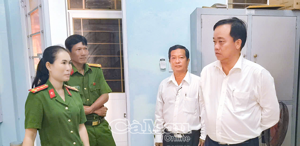 Đồng chí Huỳnh Quốc Việt thăm nơi làm việc của công an xã Ninh Thạnh Lợi.