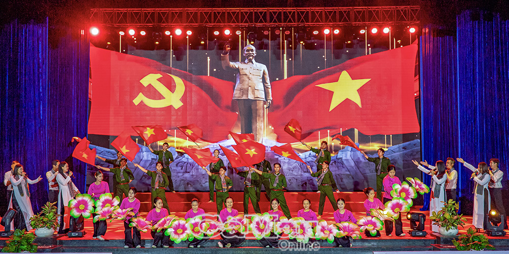 Hình ảnh Chủ tịch Hồ Chí Minh được trình chiếu xuyên suốt các tiết mục.
