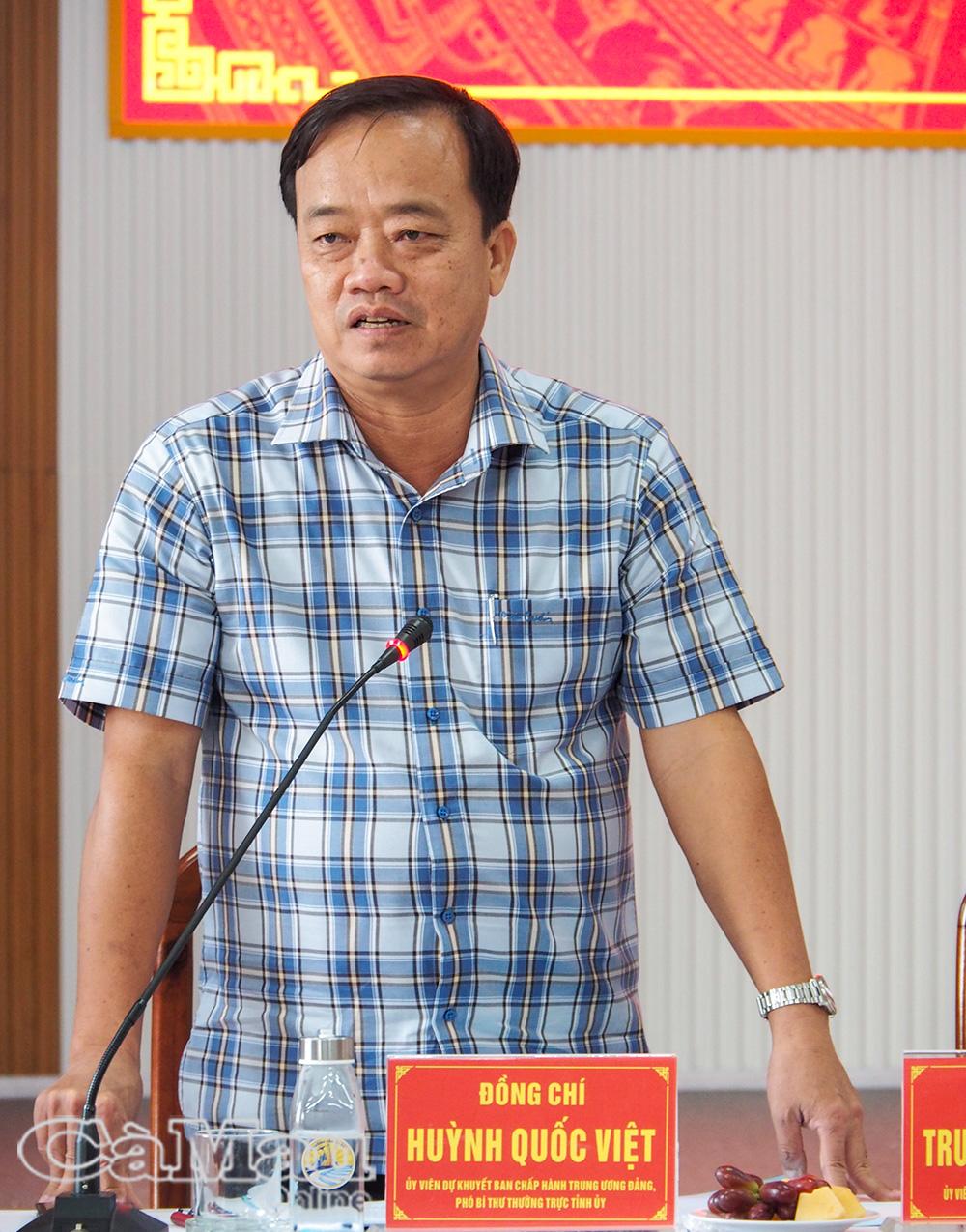 Chiều 2/12, đồng chí Huỳnh Quốc Việt, Uỷ viên dự khuyết Ban Chấp hành Trung ương Đảng, Phó Bí thư Thường trực Tỉnh uỷ Cà Mau, làm việc với Đảng uỷ phường Tân Thành. Tham gia cùng đoàn có đồng chí Lê Văn Sử, Phó Chủ tịch UBND tỉnh; đại diện lãnh đạo các sở, ban, ngành tỉnh.