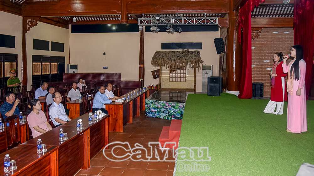 Đoàn thưởng thức trình diễn nghệ thuật đờn ca tài tử tại Khu lưu niệm nghệ thuật đờn ca tài tử Nam bộ và nhạc sĩ Cao Văn Lầu.