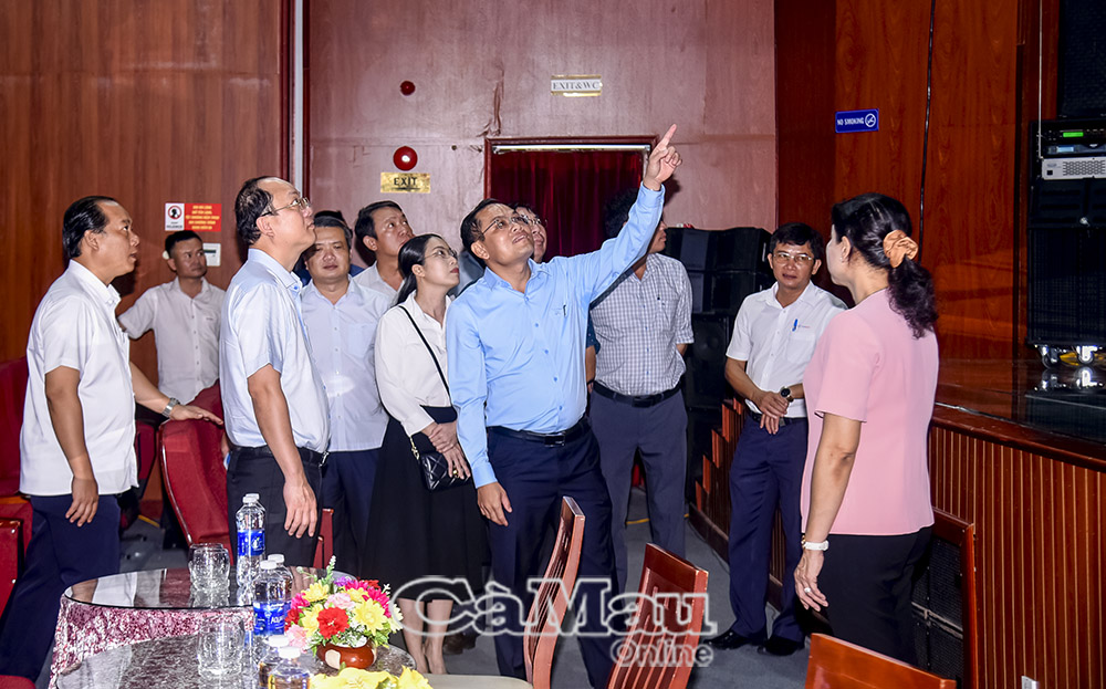 Đoàn khảo sát cơ sở vật chất của Nhà hát Cao Văn Lầu.