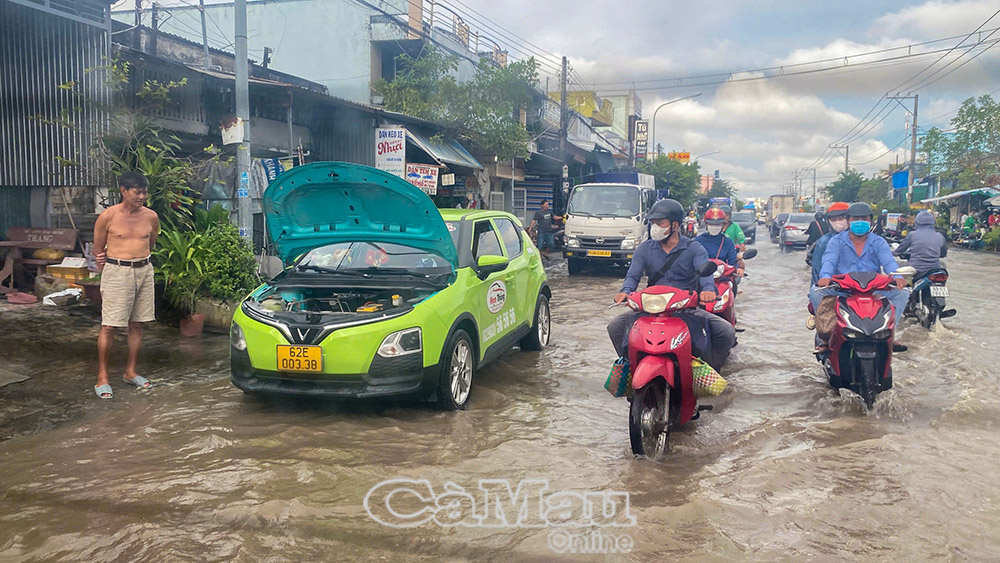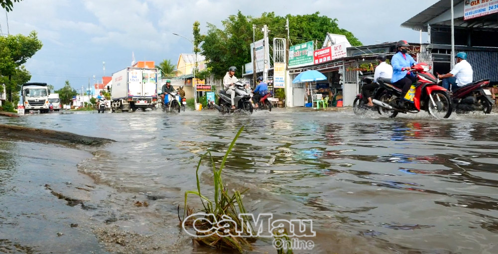 Triều cường dâng cao khiến Quốc lộ 1 đoạn qua tỉnh Cà Mau bị ngập nặng, có nơi sâu trên 30 cm, gây khó khăn cho giao thông, ảnh hưởng lớn đến sinh hoạt và buôn bán của người dân.