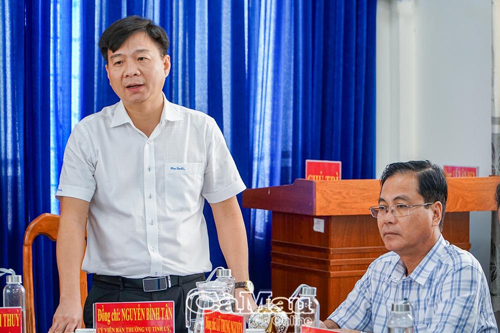 Đồng chí Nguyễn Bình Tân, Trưởng Ban Nội chính Tỉnh uỷ lưu ý về các vấn đề kiện toàn mô hình, nâng cao chất lượng nguồn nhân lực y tế tuyến cơ sở.