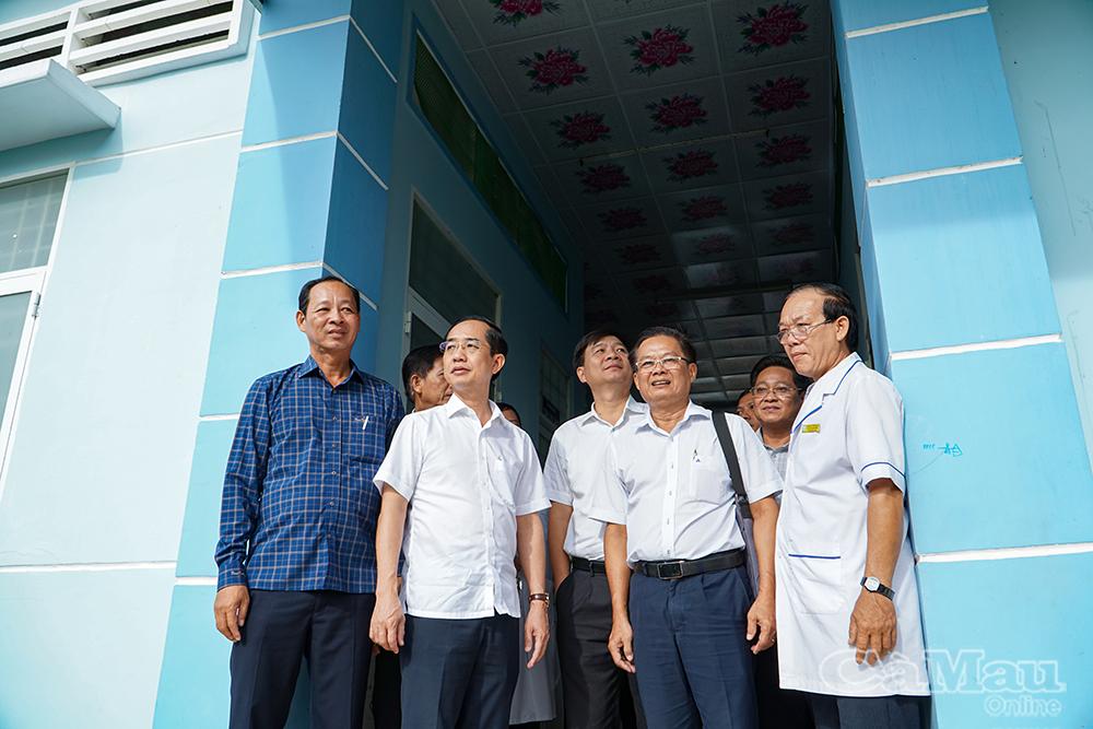 Phó Bí thư Tỉnh uỷ Hồ Thanh Thuỷ (thứ 2, từ trái sang), làm trưởng đoàn công tác kiểm tra, khảo sát thực tế hoạt động trạm y tế tại xã Phú Mỹ.