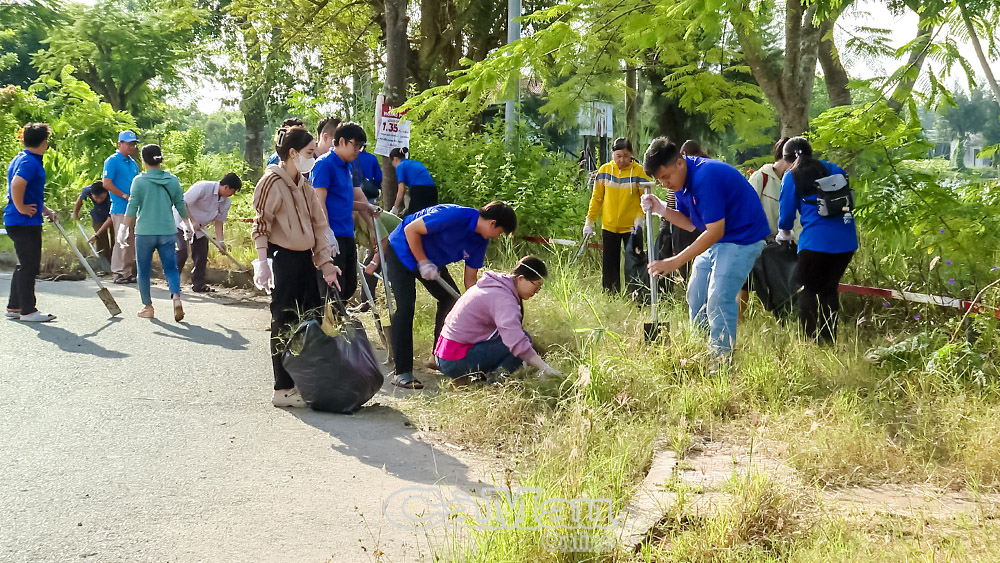Đông đảo đoàn viên, hội viên và Nhân dân tham gia dọn dẹp vệ sinh trên tuyến đường gần Khu du lịch sinh thái Hồ Nam, thuộc Khóm 1.