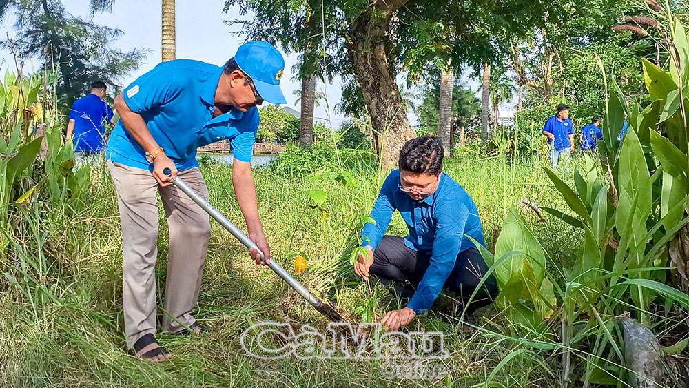 Sáng 28/11, Mặt trận Tổ quốc và các tổ chức chính trị - xã hội phường Bạc Liêu tổ chức ra quân vệ sinh môi trường, thu gom rác thải và trồng 100 cây bằng lăng tại khu vực Hồ Nam, Khóm 1.