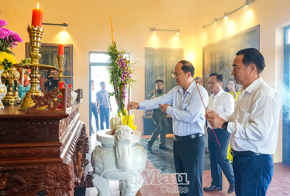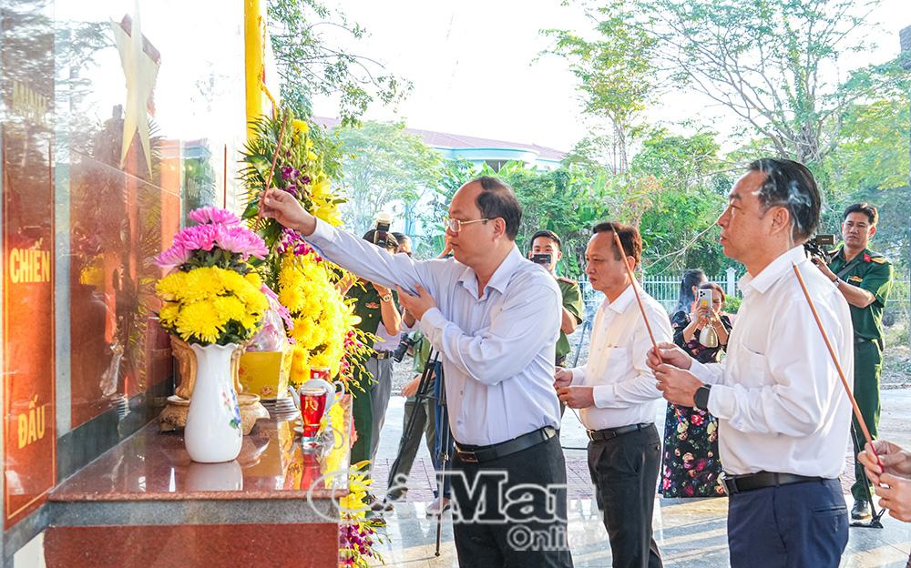 Trước buổi lễ, đồng chí Nguyễn Hồ Hải, Uỷ viên Ban Chấp hành Trung ương Đảng, Bí thư Tỉnh uỷ, cùng các đồng chí lãnh đạo HĐND, UBND tỉnh và đại biểu thắp hương tri ân tại Đài tưởng niệm các anh hùng liệt sĩ xã Thới Bình.