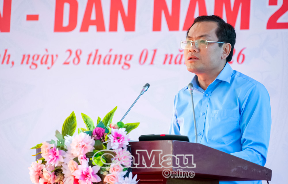 Phát biểu tại buổi lễ, Phó Chủ tịch UBND tỉnh Ngô Vũ Thăng, Phó Trưởng ban Chỉ đạo Tết Quân - Dân năm 2026, nhấn mạnh, Tết Quân - Dân là hoạt động truyền thống mang đậm tính nhân văn của tỉnh Cà Mau, được gìn giữ và phát huy qua nhiều thế hệ. Qua 12 năm triển khai, chương trình đã thực hiện hàng trăm công trình ý nghĩa, với tổng kinh phí hàng trăm tỷ đồng, huy động hàng ngàn ngày công lao động của cán bộ, chiến sĩ và nhân dân.