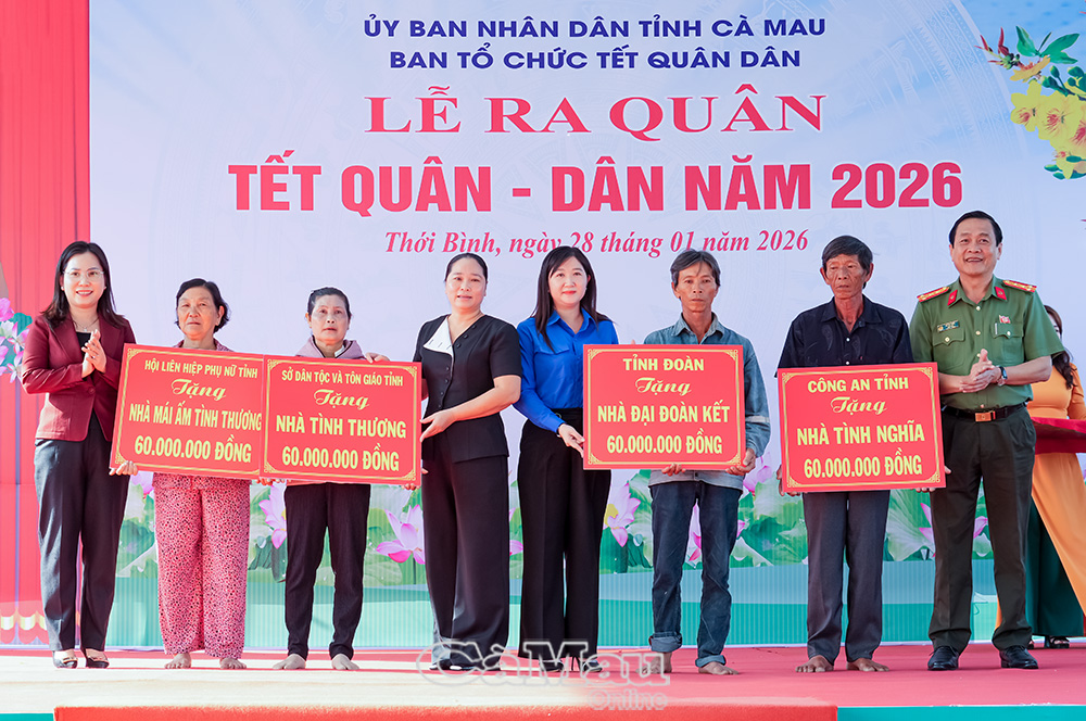 Nhằm tạo không khí vui tươi, ấm áp, thắm đượm tình quân - dân, mừng Đảng quang vinh, mừng Xuân Bính Ngọ 2026, sáng 28/1, Ban Chỉ đạo Tết Quân - Dân năm 2026 tỉnh Cà Mau long trọng tổ chức lễ ra quân thực hiện các công trình, phần việc tại xã Thới Bình.