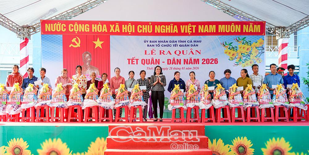 Tại buổi lễ, lãnh đạo Trung ương, Quân khu 9, Tỉnh uỷ, HĐND, UBND tỉnh, Uỷ ban MTTQ Việt Nam tỉnh Cà Mau, các sở, ngành, tổ chức chính trị - xã hội, doanh nghiệp trong và ngoài tỉnh cùng UBND các xã, phường trao hỗ trợ nhiều công trình, phần việc ý nghĩa, góp phần mang đến cho người dân vùng căn cứ cách mạng một cái Tết ấm no, sung túc.
